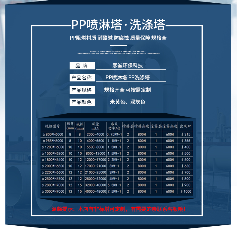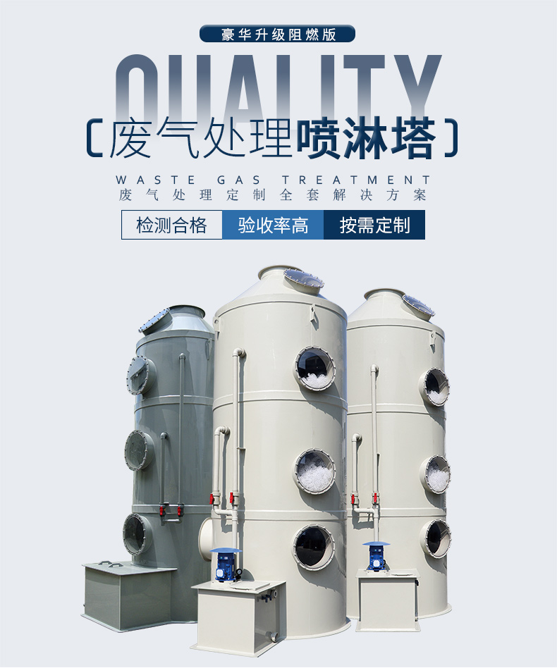 PP噴淋塔也叫做PP洗滌塔、酸霧凈化塔--酸堿廢氣處理設備,噴淋塔工作原理廢氣由風管引入凈化塔,經過填料層,廢氣與吸收液進行氣液兩相充分接觸吸收中和反應,廢氣經過凈化后,達到地方排放標準的排放要求,低于國家排放標準,再經除霧板脫水除霧后由風機排入大氣。